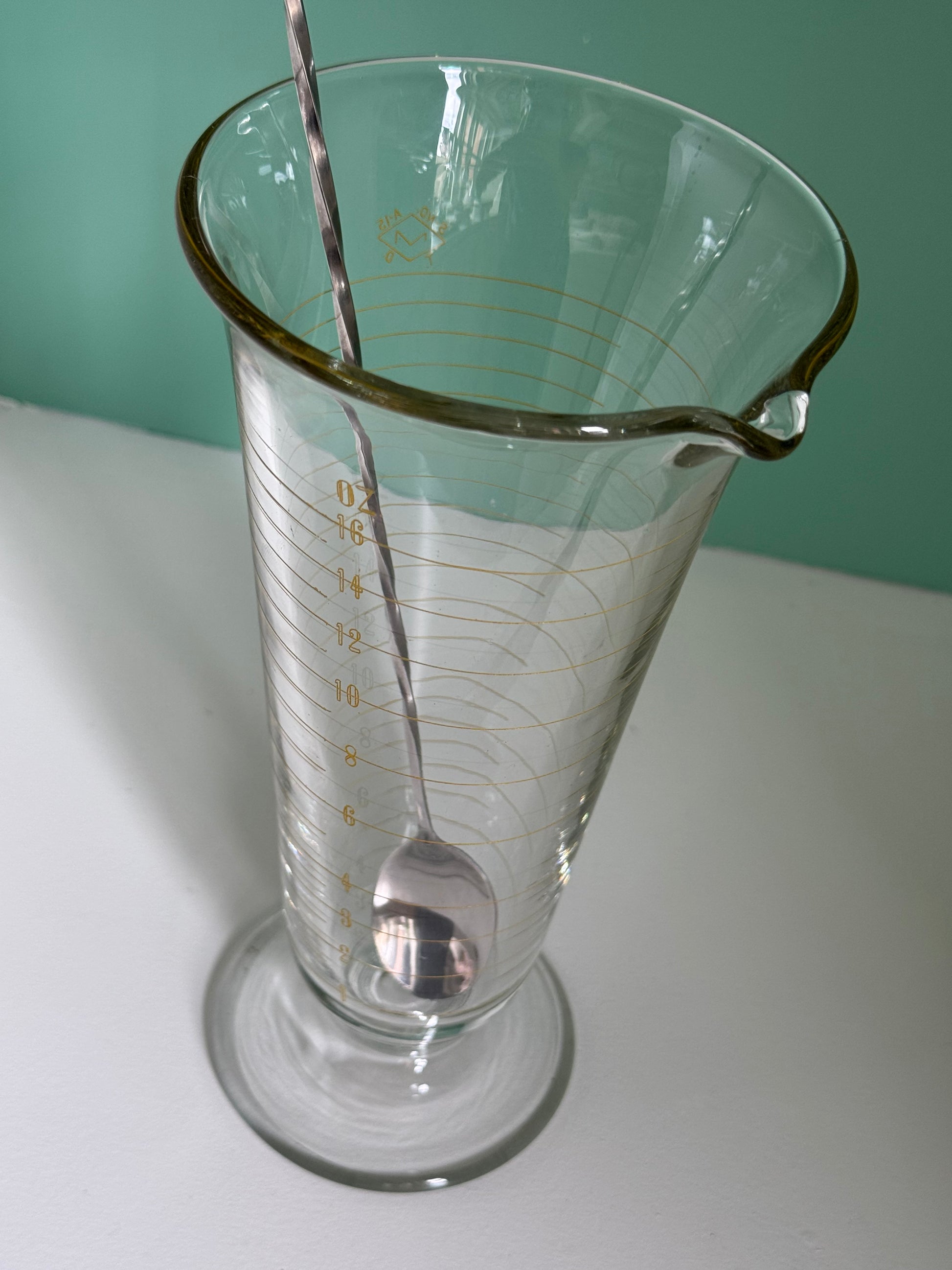 This circa 1920s antique glass apothecary beaker is perfect for mixing potions — or martinis. Spoon not included.