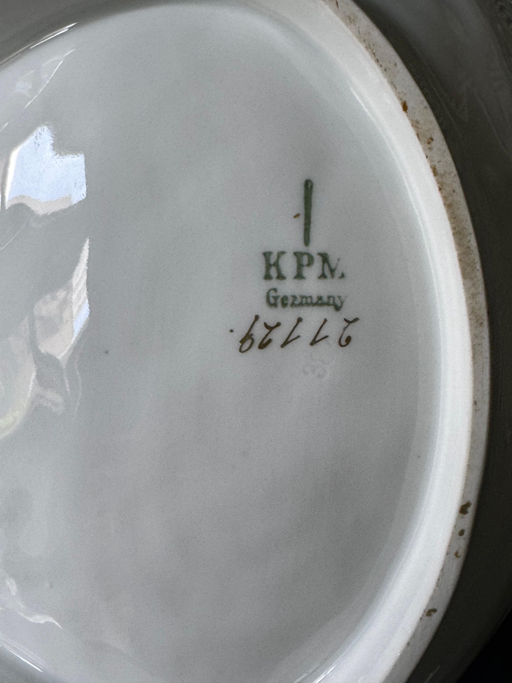 Late nineteenth century hand-painted divided porcelain lobster dish with clam shells and gilt detailing. Marked KPM Germany. These pieces were prevalent during the Victorian era when lobster dishes became popular with the wealthy. Today, it is perfect for serving clams, shrimp cocktail, or lobster salad.